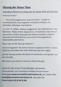 Zeige grösseres Bild Sitzung der leisen Töne, 19.Januar 2024Rita Schweiger2024-03-08T13:45:54+00:0013. November 2023|Teilen Sie diesen Artikel!FacebookXRedditLinkedInWhatsAppTelegramTumblrPinterestVkXingE-Mail